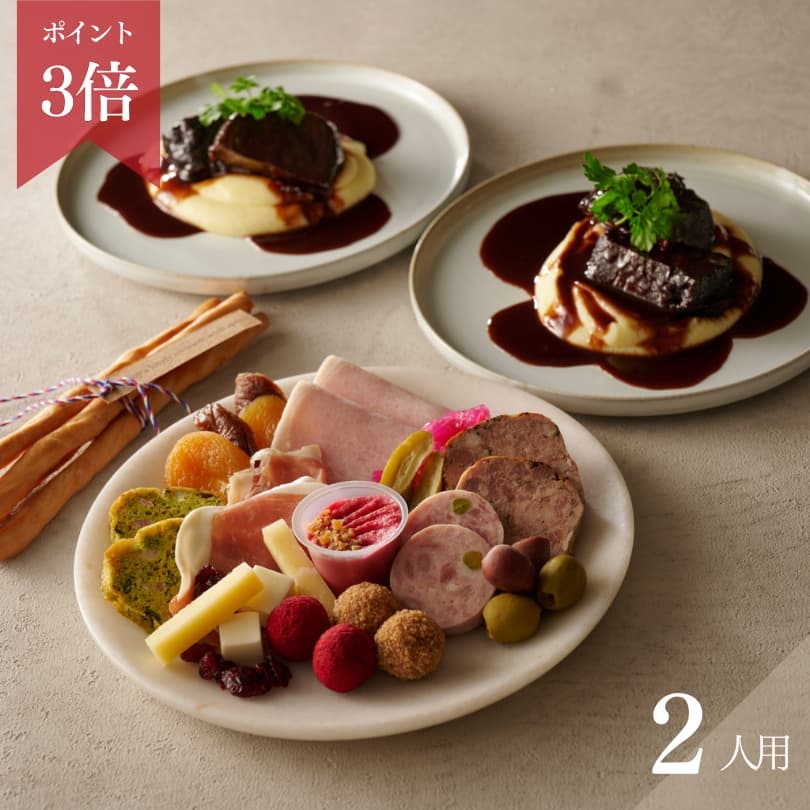 【ディナトワールセット2名様用】アペロボックス-MOMENT-(17種オードブルの盛り合わせ・グリッシーニ付き)&牛ホホ肉の赤ワインブレゼ