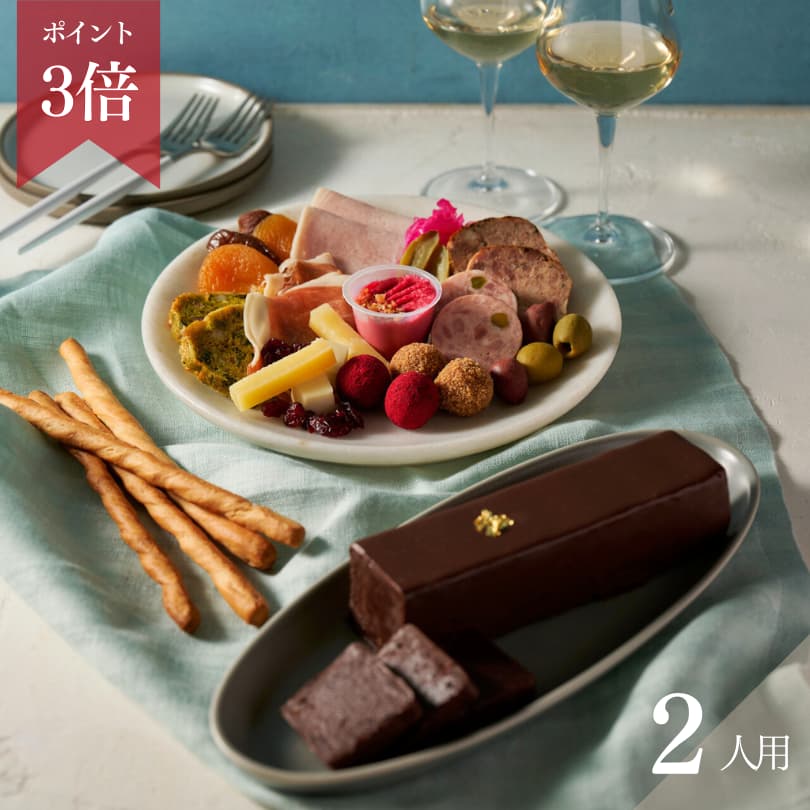 【ディナトワールセット2名様用】アペロボックス-MOMENT-(17種オードブルの盛り合わせ・グリッシーニ付き)&フォンダン・ショコラ キャラメル・サレ