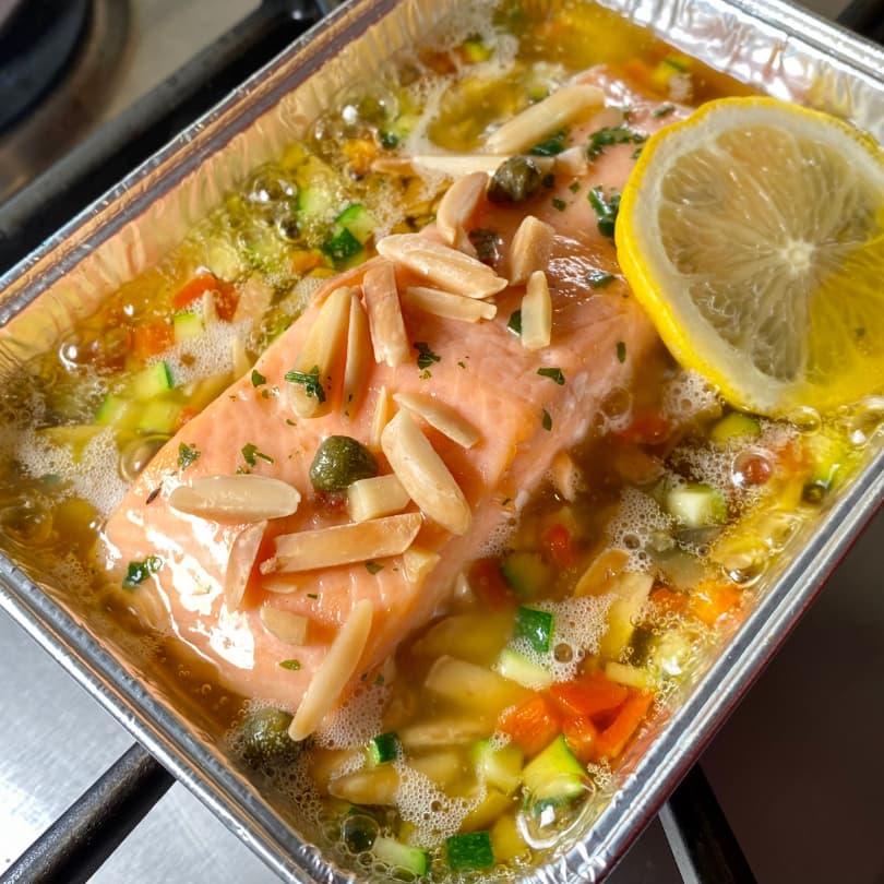 | 原材料 | 富士の介(キングサーモン×ニジマス(交雑種))、オリーブ油、バター、アーモンド、レモン、黄ピーマン、ケーパース、椎茸、玉葱、セロリ、長ナス、セミドライトマト、食塩、ニンニク、ズッキーニ、赤ピーマン、ブラックオリーブ、オリーブ・ピメント詰め、三温糖、パセリ、黒胡椒、タイム、唐辛子、ローレル、カレー粉/酸味料、調味料(アミノ酸)、(一部に乳成分・アーモンド・さけを含む) |