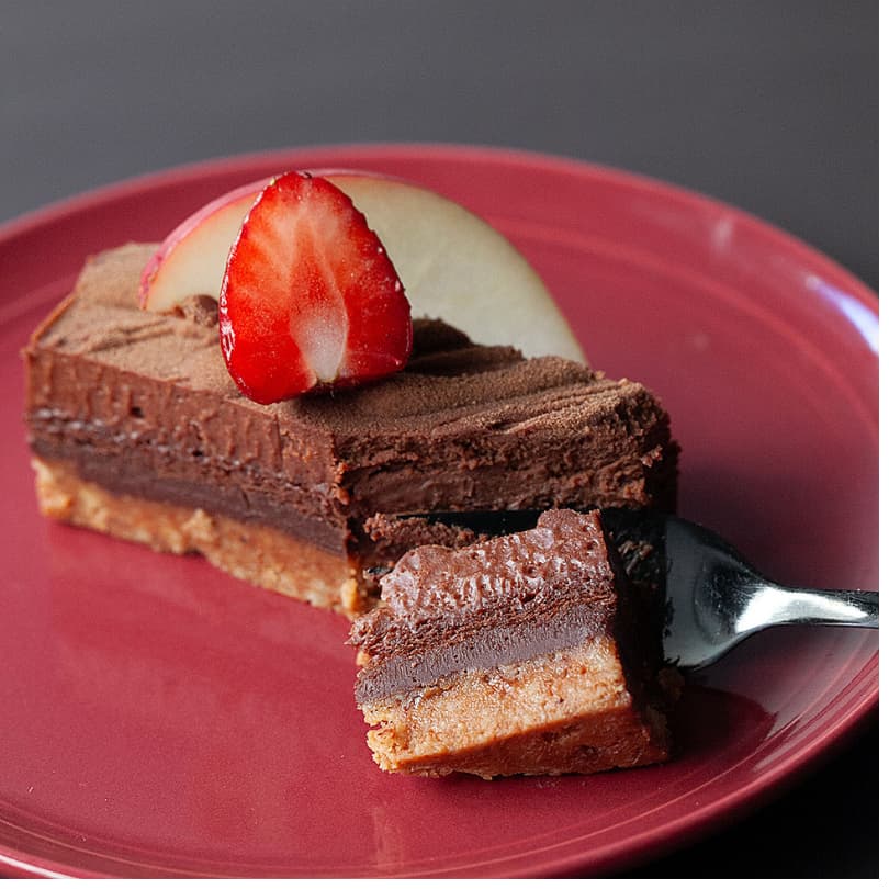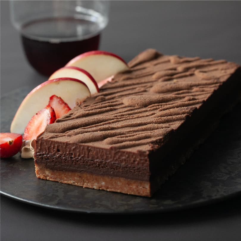 トンカ豆の魅惑的な香りをまとったチョコレートの層が織りなすなめらかなテクスチャーに、クランブル生地のザクザクした歯ざわりが楽しいアクセントを添えてくれます。