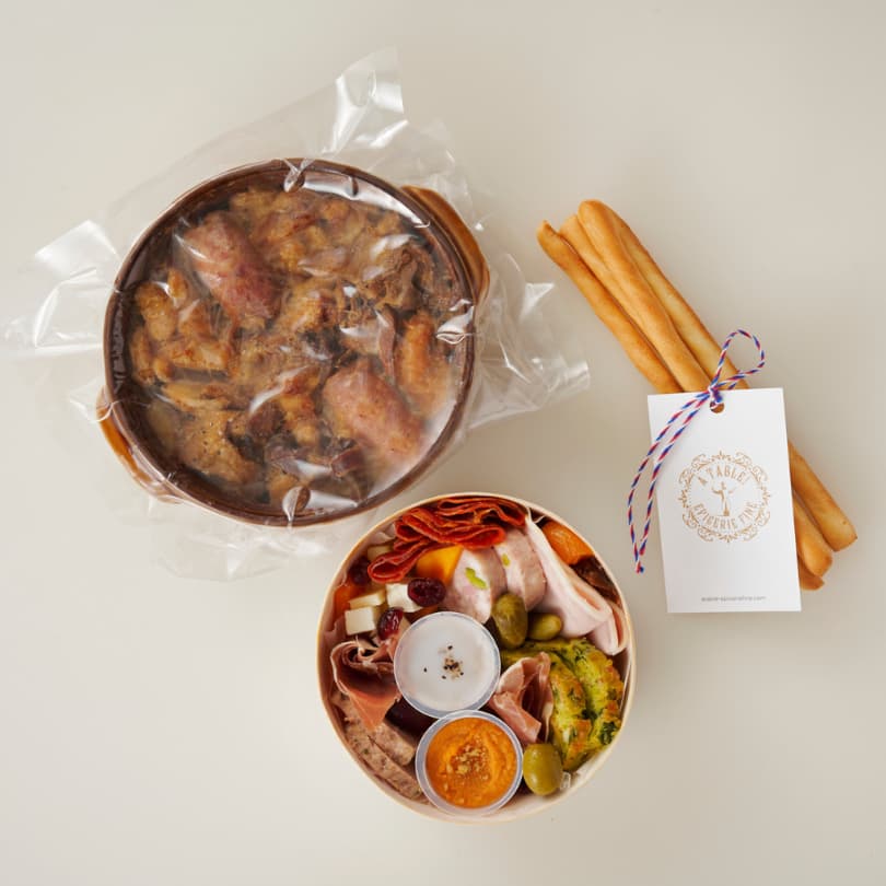【ディナトワールセット2名様用】アペロBOX(S) (17種オードブルの盛り合わせ・グリッシーニ付き) &牛ホホ肉の赤ワインブレゼ