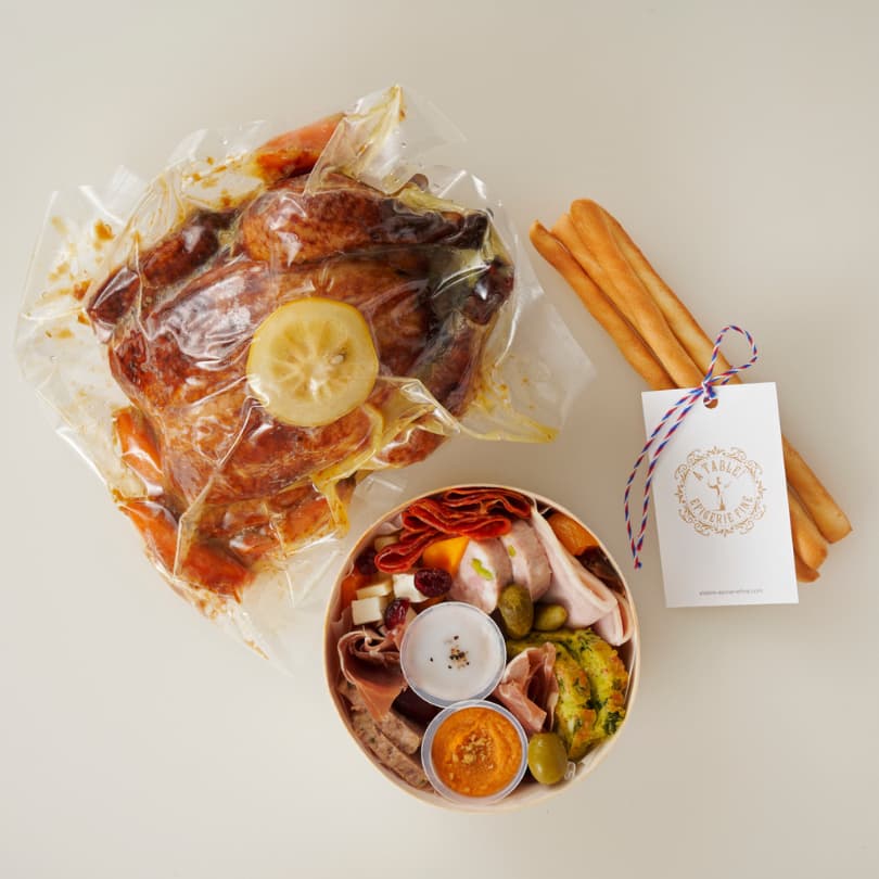 【ディナトワールセット2名様用】アペロボックス (S) (17種オードブルの盛り合わせ、グリッシーニ付き) & 若鶏のロースト ビリヤニ詰め