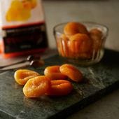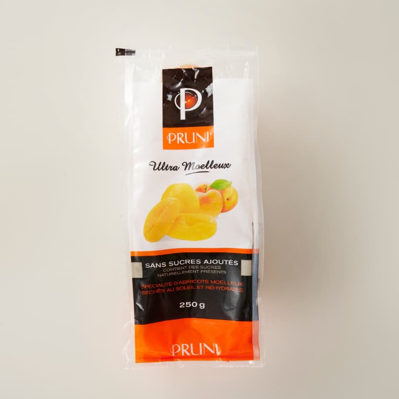 一般的なセミドライフルーツは、乾燥工程においてフルーツの水分を20~40%まで減らすという方法で作られています。 一方、プリュニ社では、アプリコットを丸のままの状態で完全に水分を抜いたのち、35%の水分を再び果実に戻すという手間暇かけた製法を採用しています。この独自のプロセスが驚くほどの食感と風味を生み出しています。