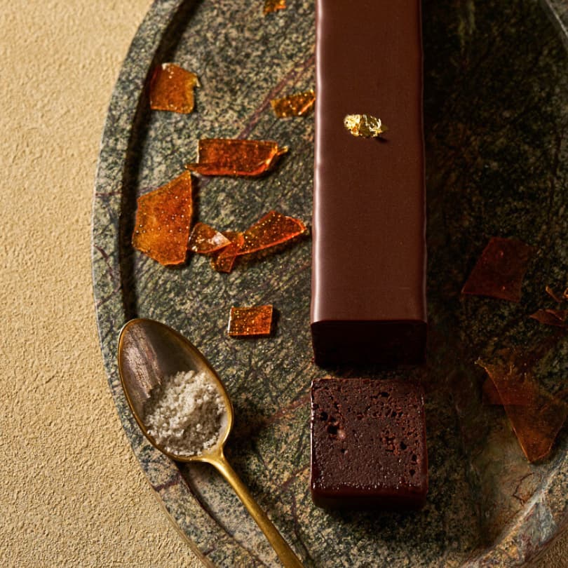 イタリアの老舗BEAN to BARメーカー、イカム社のカカオ72%の高品質なダークチョコレートと良質な北海道産バターを贅沢に使用。しっとりとした食感と、濃厚でまろやかな風味が口いっぱいに広がります。塩には、ラ・ボール近郊にあるゲランド塩田のミネラル感豊かな塩を使用。ほのかな塩味が甘みを引き締めながら、奥行きのある余韻を残します。