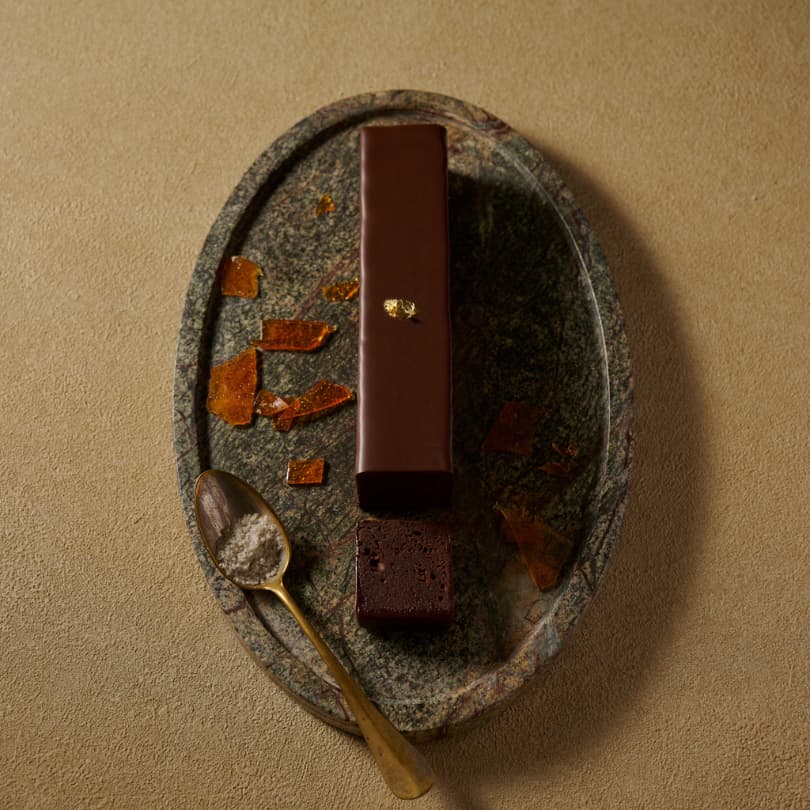 イタリアの老舗BEAN to BARメーカー、イカム社のカカオ72%の高品質なダークチョコレートと良質な北海道産バターを贅沢に使用。しっとりとした食感と、濃厚でまろやかな風味が口いっぱいに広がります。塩には、ラ・ボール近郊にあるゲランド塩田のミネラル感豊かな塩を使用。ほのかな塩味が甘みを引き締めながら、奥行きのある余韻を残します。