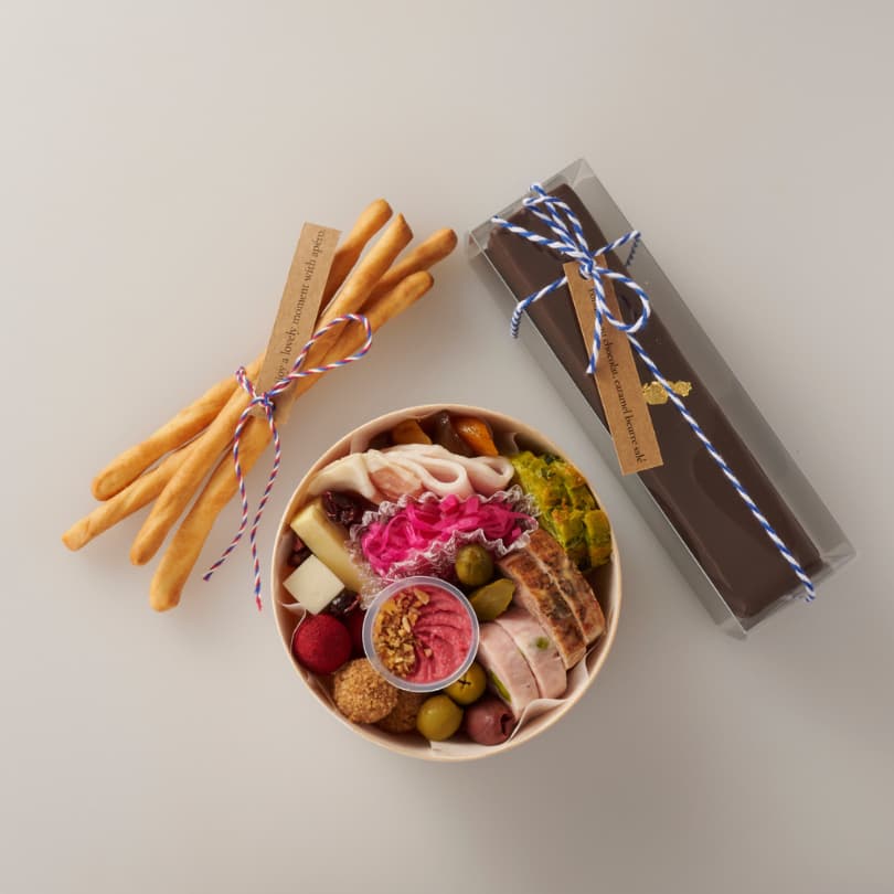 【ディナトワールセット2名様用】アペロボックス-MOMENT-(17種オードブルの盛り合わせ・グリッシーニ付き)&フォンダン・ショコラ キャラメル・サレ