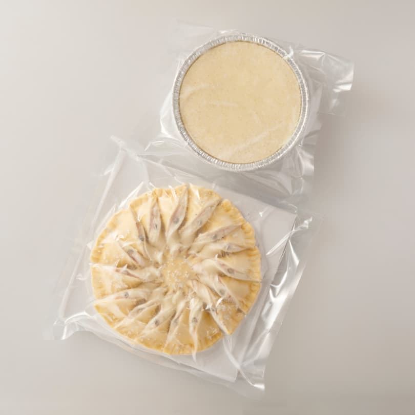 | 内容量 | タルト・ソレイユ クロック・ムッシュ風:1p(約220g/真空パック入り)(高さ:約15mm 直径:160mm) 鴨モモ肉のアッシェパルマンティエ:約290g(容器外寸:直径13.8cm、高さ3cm) |