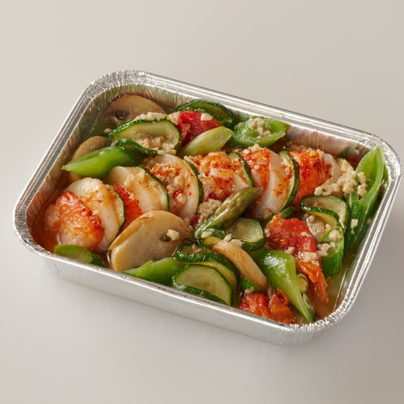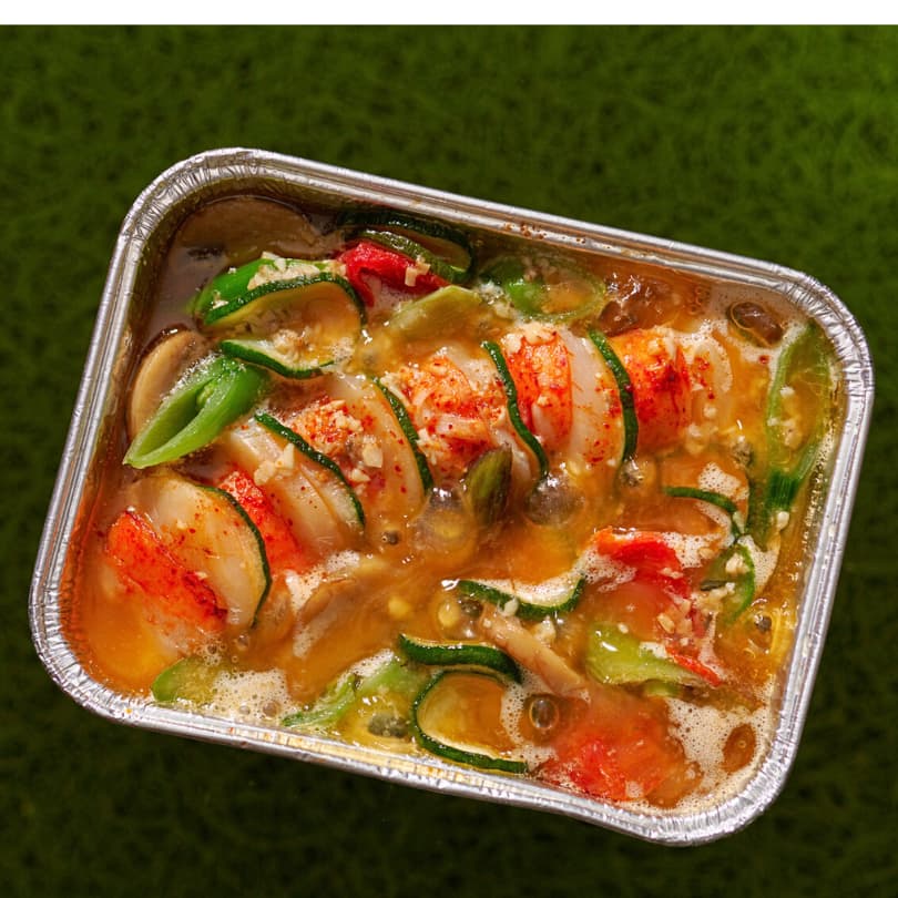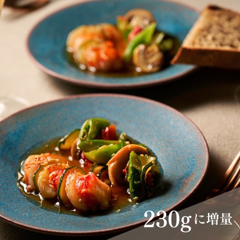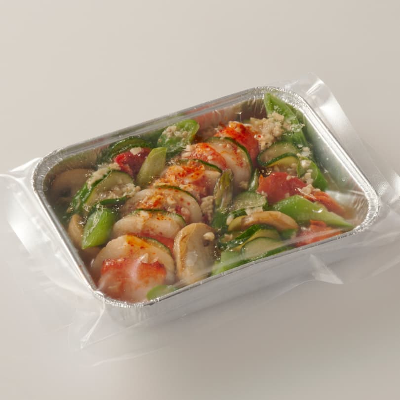 | 原材料 | オマール海老(カナダ産)、オリーブ油、ホタテコンフィ、ズッキーニ、シャンピニオン、スナップエンドウ、バター、グリーンアスパラガス、セミドライトマト、ニンニク、アンチョビ、食塩、タイム、胡椒、唐辛子、(一部にえび・乳成分・大豆を含む) |